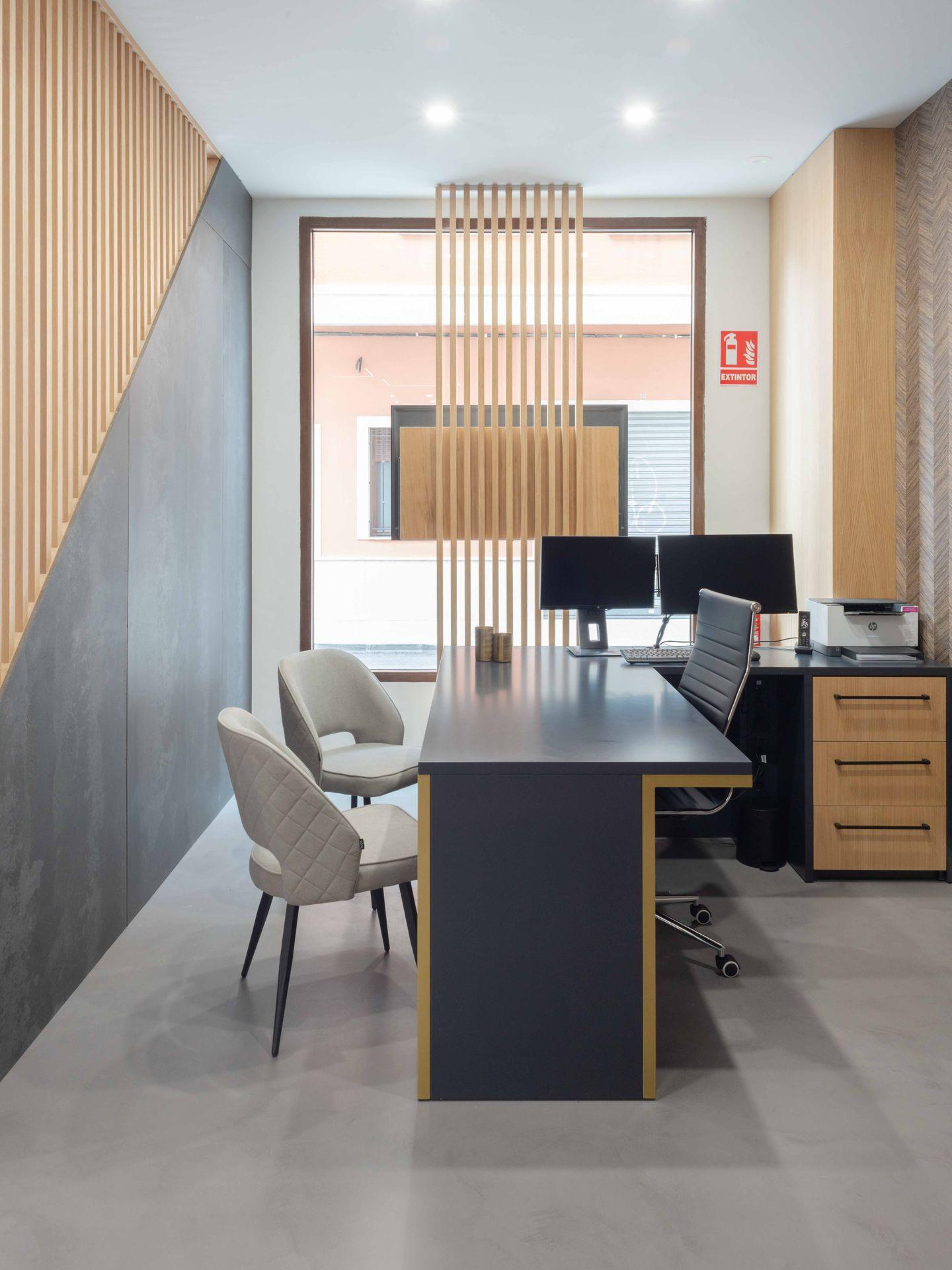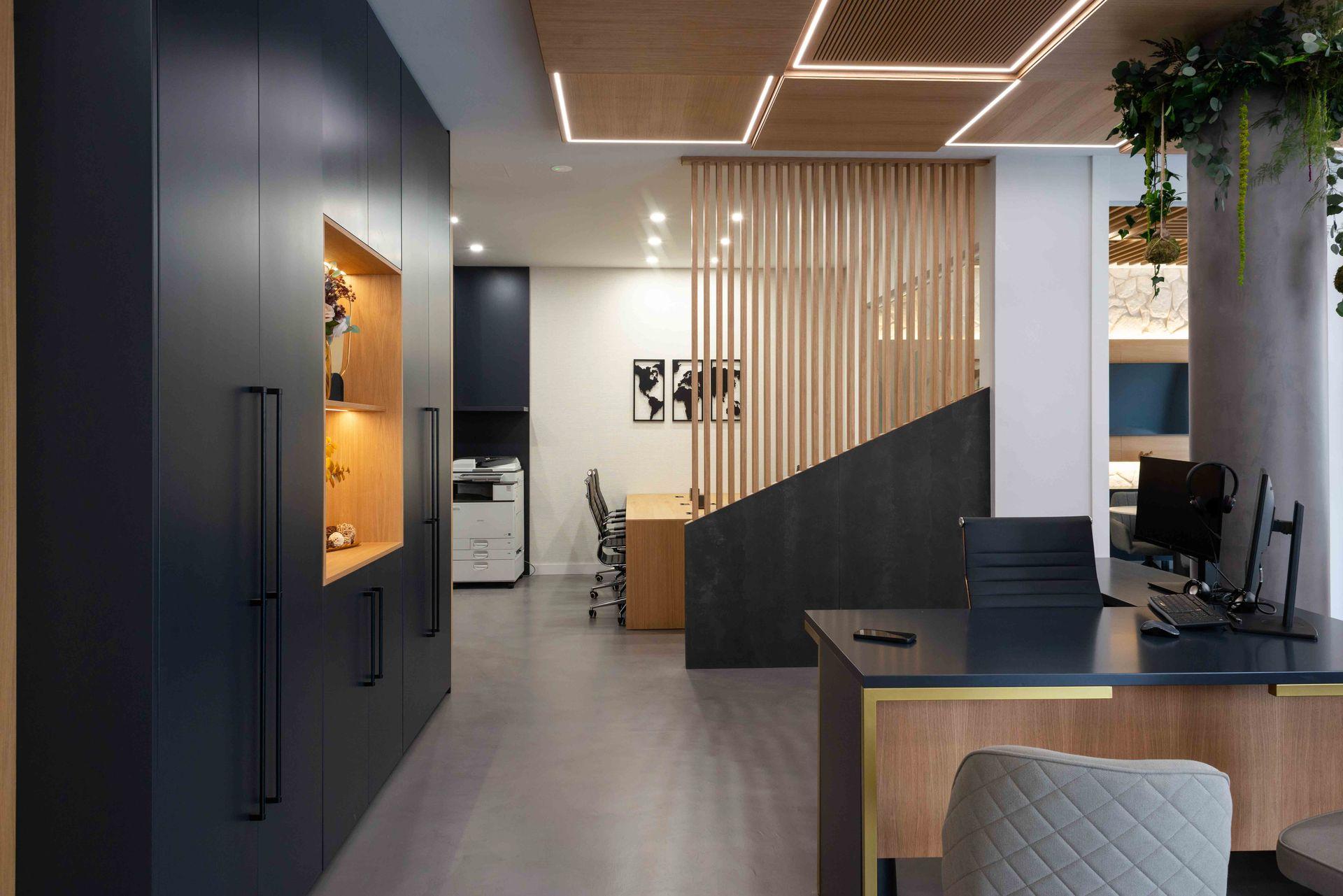 Este proyecto de inmobiliaria redefine el espacio de trabajo con una propuesta donde la modernidad se encuentra con la funcionalidad y el diseño acogedor. La combinación de tonos sobrios como el antracita, junto a la calidez de la madera natural, crea un ambiente profesional pero invitador.
