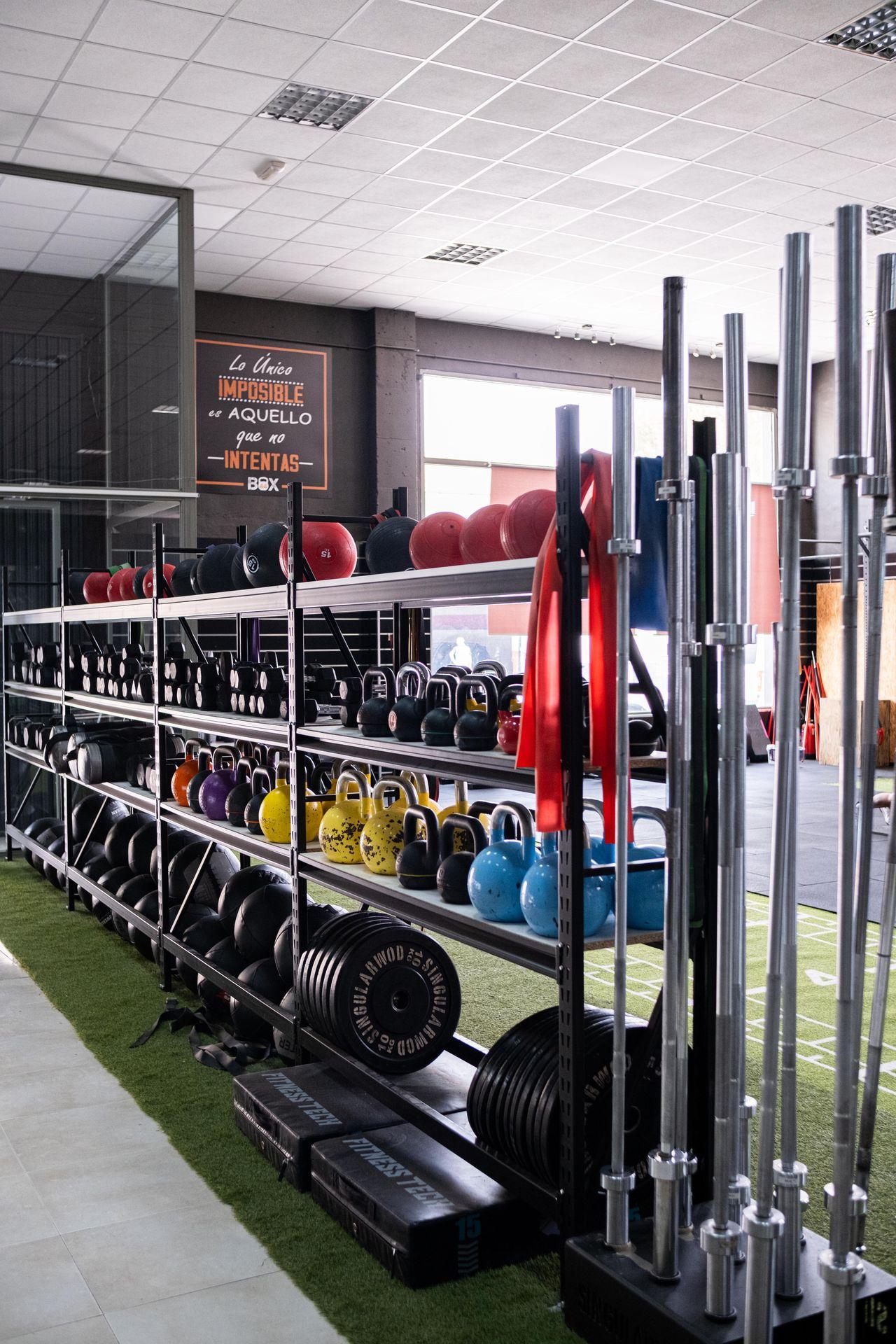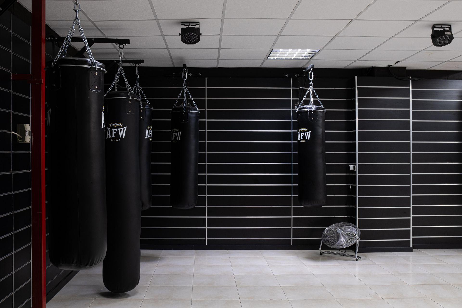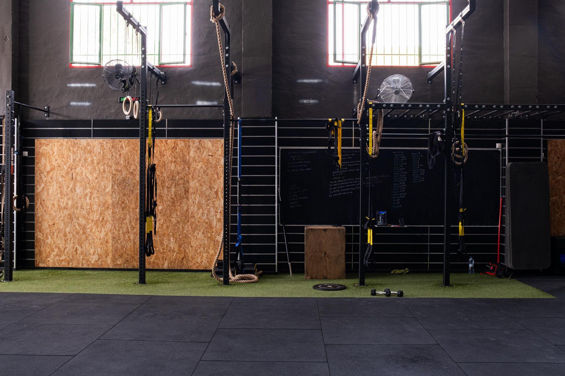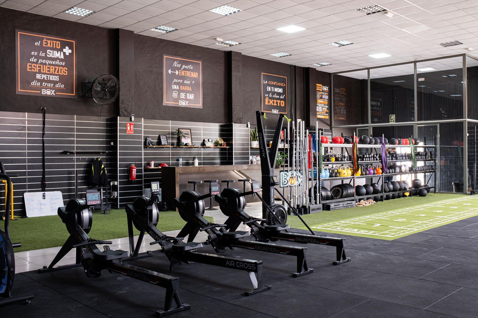 Este gimnasio es un claro ejemplo de diseño funcional y motivador, donde la estética industrial se fusiona con la energía del entrenamiento. Predominan los tonos oscuros en paredes y suelos, creando un ambiente de concentración y determinación, contrastado por la iluminación puntual y los detalles en colores vivos que inyectan dinamismo.
