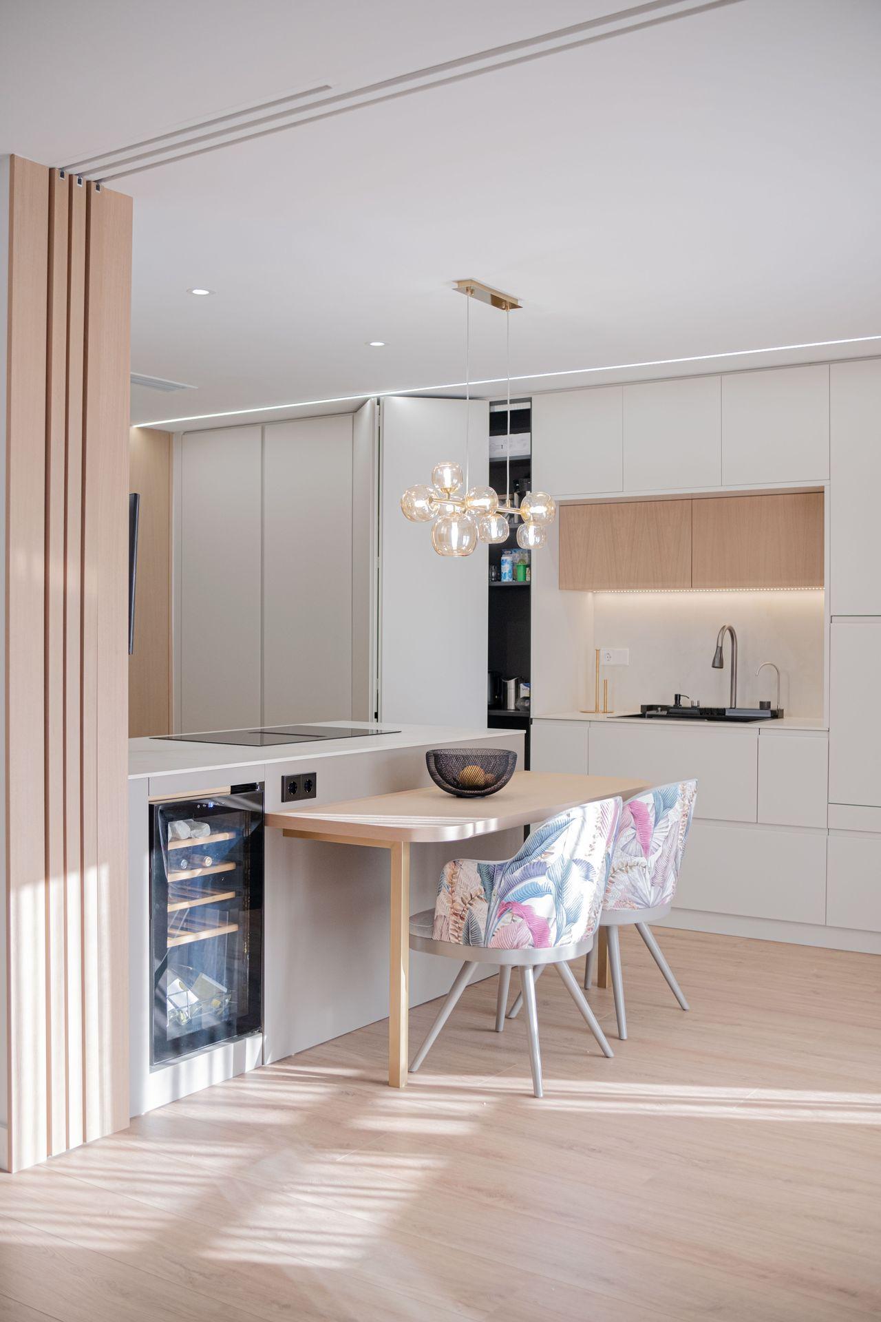 Este proyecto refleja una visión atemporal del interiorismo, donde lo clásico se fusiona con la comodidad del diseño contemporáneo. A través de materiales nobles como la madera natural y una paleta de tonos suaves, cada estancia transmite calma, calidez y equilibrio. La cocina, el salón y el dormitorio se integran en un lenguaje común donde la funcionalidad se convierte en parte de la estética.
