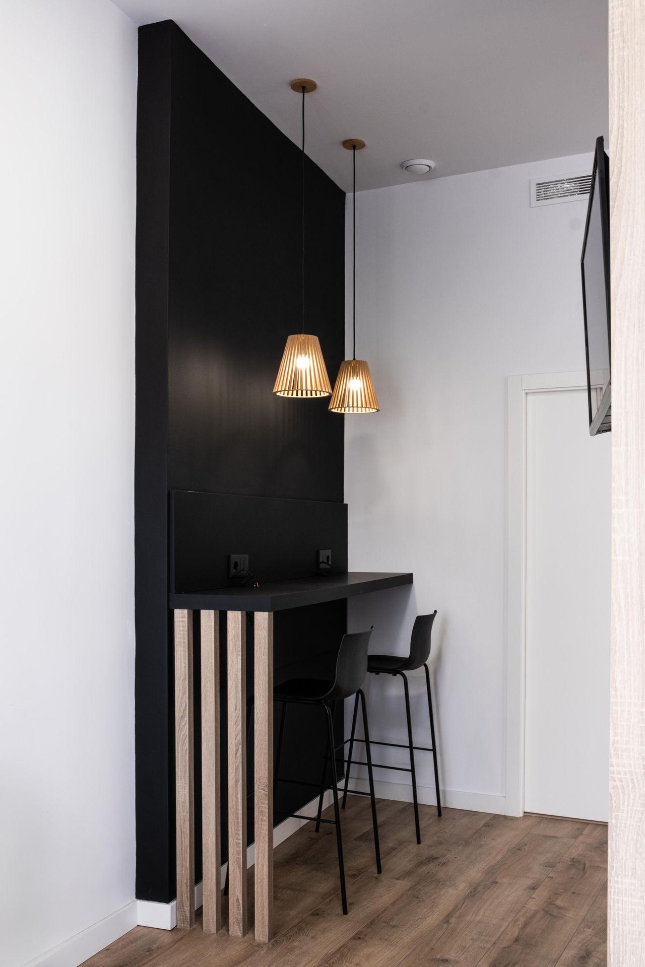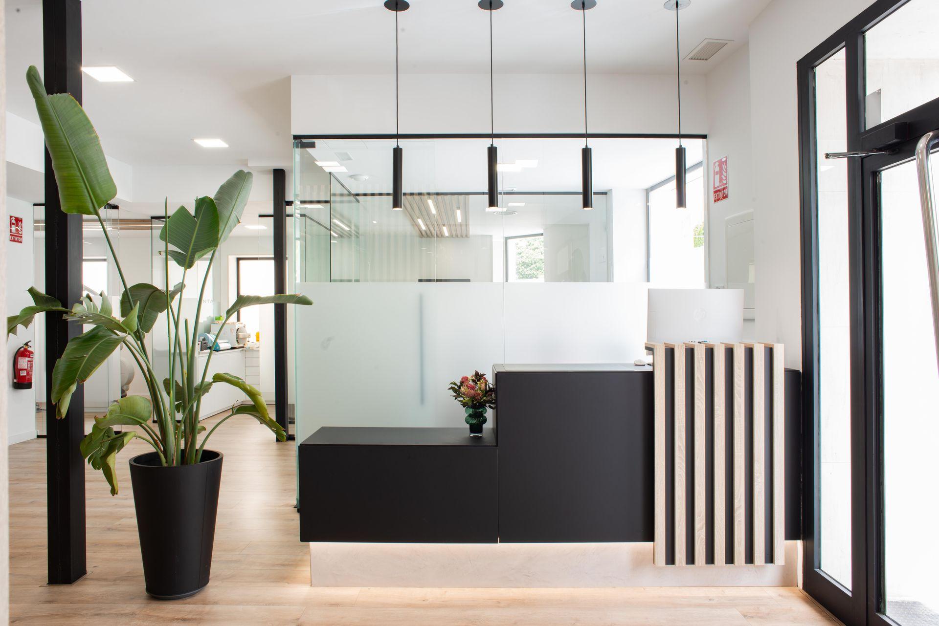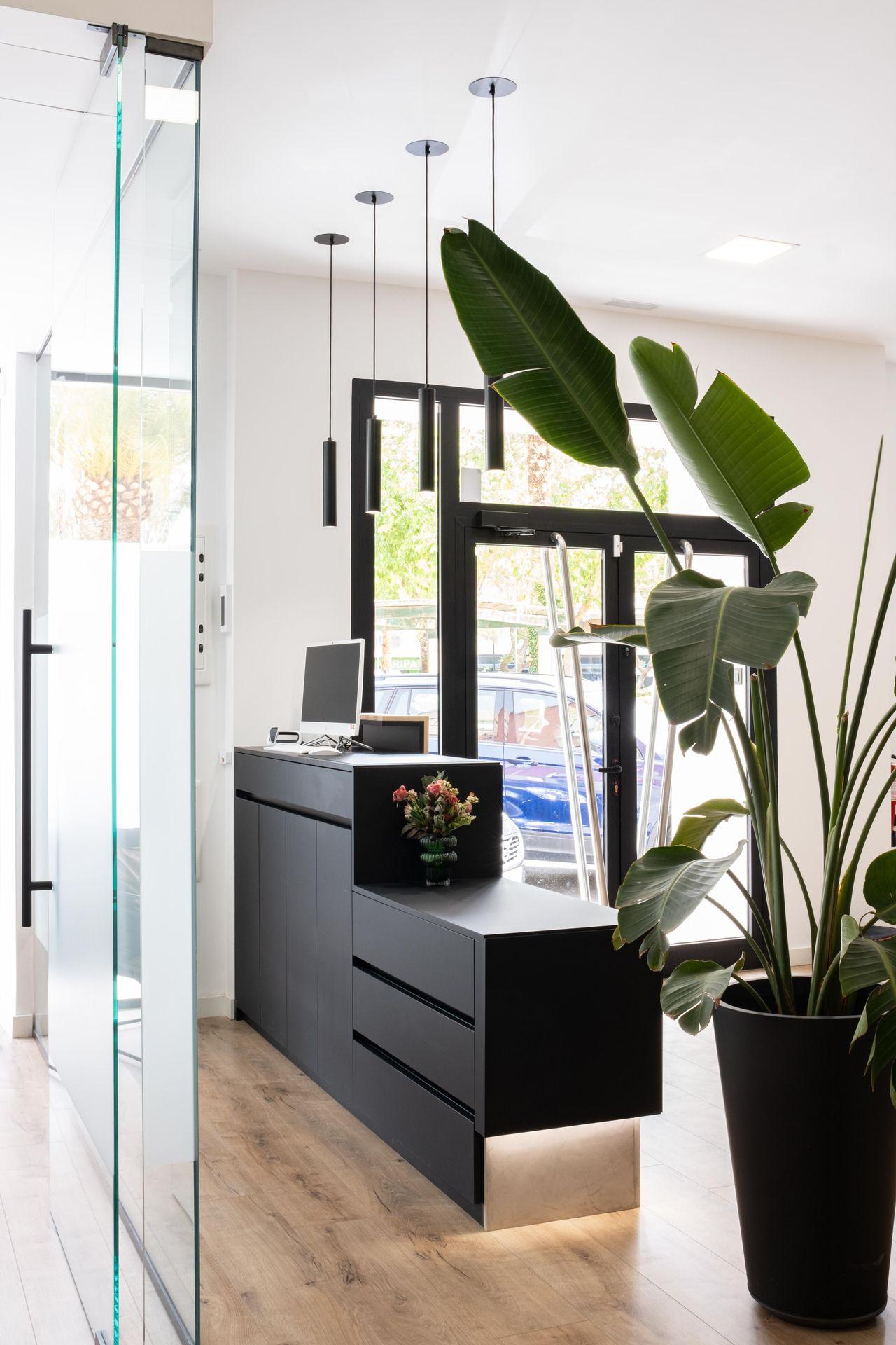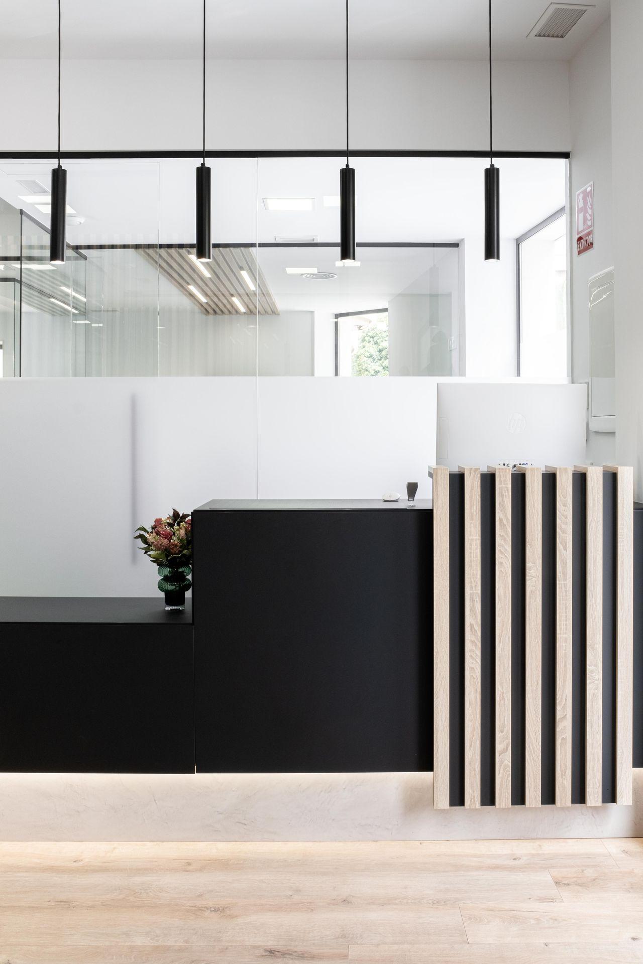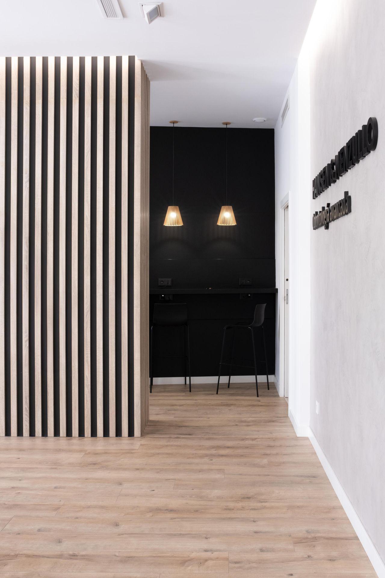 Los paneles de lamas de madera y la iluminación colgante de diseño minimalista añaden toques distintivos que rompen la monotonía, mientras que la cristalería y las plantas de interior aportan frescura y luminosidad, garantizando un entorno profesional, acogedor y de vanguardia.
